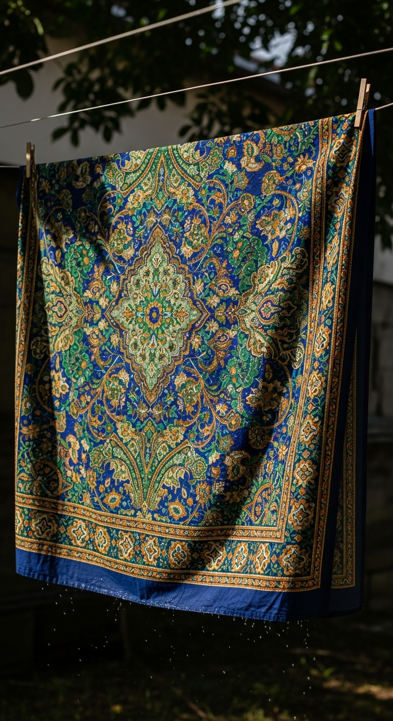Après le rinçage final, résistez à la tentation d’essorer ou de tordre le tissu. Cette action briserait les fibres et créerait des plis permanents. Pressez-le doucement entre vos mains pour évacuer l’excès d’eau, sans le tordre. L’idéal est de le suspendre immédiatement sur un fil, à l’envers, à l’ombre et à l’air libre. Évitez le soleil direct qui pourrait altérer les couleurs vives, et n’utilisez jamais de sèche-linge, car la chaleur intense détruirait l’apprêt et la brillance.